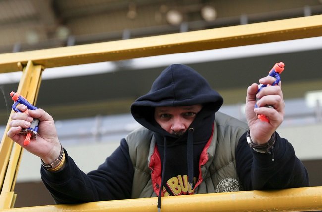 Στις κερκίδες εμφανίστηκαν... νεροπίστολα, με τον φωτογραφικό φακό να απαθανατίζει τα χιουμοριστικά στιγμιότυπα.
