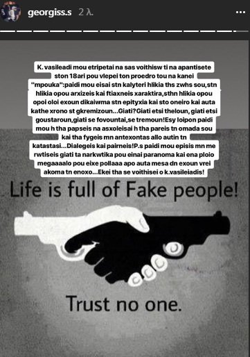 Ως φόντο στην ανάρτησή του, μάλιστα, έβαλε τη φράση: «Η ζωή είναι γεμάτοι ψεύτικους ανθρώπους. Μην εμπιστεύεσαι κανέναν».