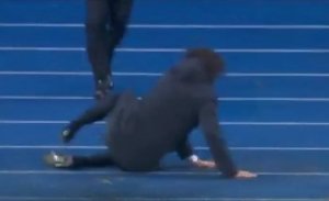 Μετά το γκολ του Ντε Φράι, ο προπονητής των «λατσιάλι» έτρεξε προς τους συνεργάτες του, αλλά πάνω στον ενθουσιασμό του γλίστρησε και έπεσε θεαματικά στο έδαφος.
