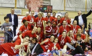 Για τρίτη συνεχόμενη χρονιά πήραν την κούπα στο μπάσκετ οι «ερυθρόλευκες», επικρατώντας στον τελικό του ΠΑΟΚ με 68-53