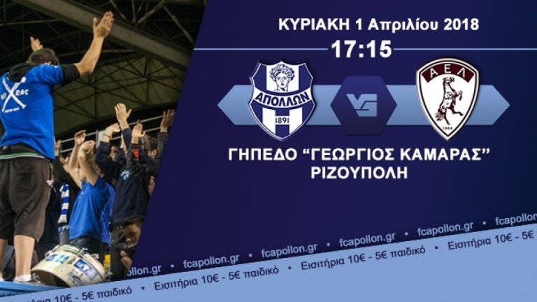 Για τη διευκόλυνση όσων θέλουν να παρακολουθήσουν τον εντός έδρας αγώνα της ομάδας μας με αντίπαλο την ΑΕΛ, (Κυριακή, 01/04/2018, 17:15) για την 26η αγωνιστική ημέρα, του πρωταθλήματος της Super League, στο γήπεδο «Γεώργιος Καμάρας», η ΠΑΕ Απόλλων Σμύρνης ενημερώνει:
