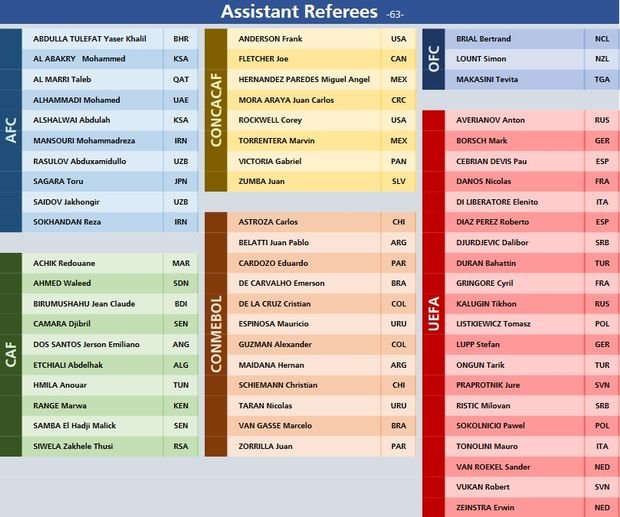Ανακοινώθηκαν οι 36 ρέφερι και οι 63 βοηθοί που θα σφυρίξουν στα γήπεδα της Ρωσίας