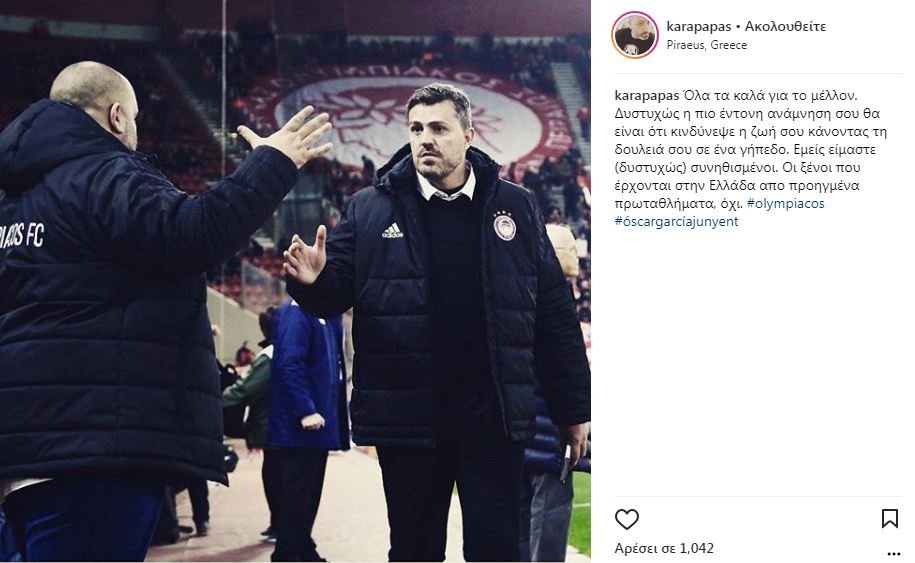 Η ανάρτηση από τον διευθυντή επικοινωνίας του Ολυμπιακού στο instagram