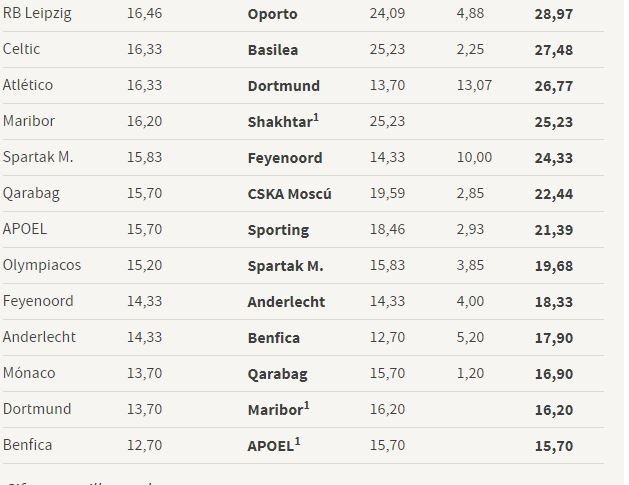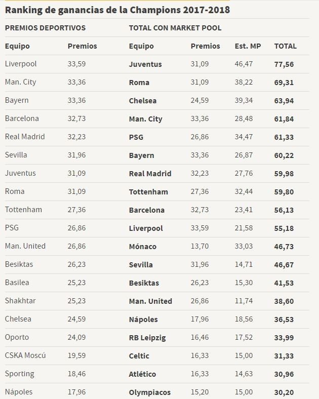 Η ισπανική «As» δημοσιεύει την Τρίτη του Πάσχα (10/4) ένα πολύ ενδιαφέρον θέμα, με τα έσοδα των 32 ομάδων που συμμετείχαν στους ομίλους της κορυφαίας διασυλλογικής διοργάνωσης.