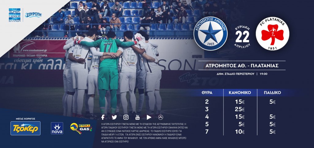 Αναλυτικά η ανακοίνωση: Το Τμήμα Διαχείρισης Εισιτηρίων της ΠΑΕ Ατρόμητος ανακοινώνει ότι σήμερα(Σάββατο) συνεχίζεται η προπώληση των εισιτηρίων του Ατρόμητος-Πλατανιάς στο πλαίσιο της 28ης αγωνιστικής της Superleague ΣΟΥΡΩΤΗ.