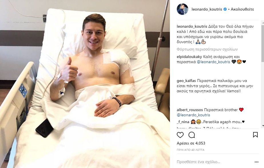 Ο Λεονάρντο Κούτρης πέρασε την Τετάρτη (25/4) την πόρτα του χειρουργείου, προκειμένου να αποκατασταθεί το πρόβλημα στον αριστερό του ώμο.