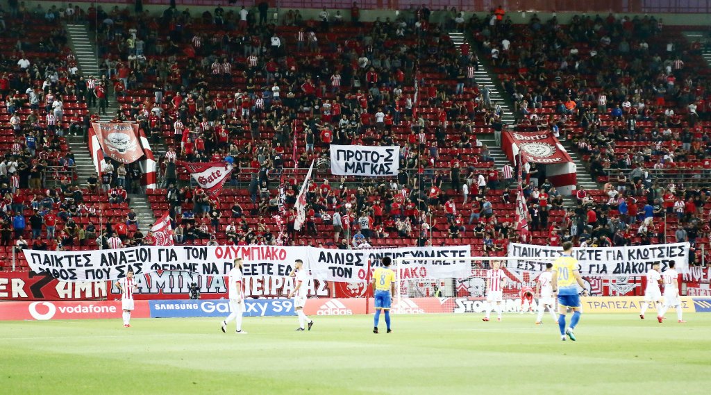 Στην εξέδρα καταγράφτηκε ένα ιδιότυπο «δημοψήφισμα» κυρίως από τους οργανωμένους του Ολυμπιακού, οι οποίοι πήραν θέση για όλα!
