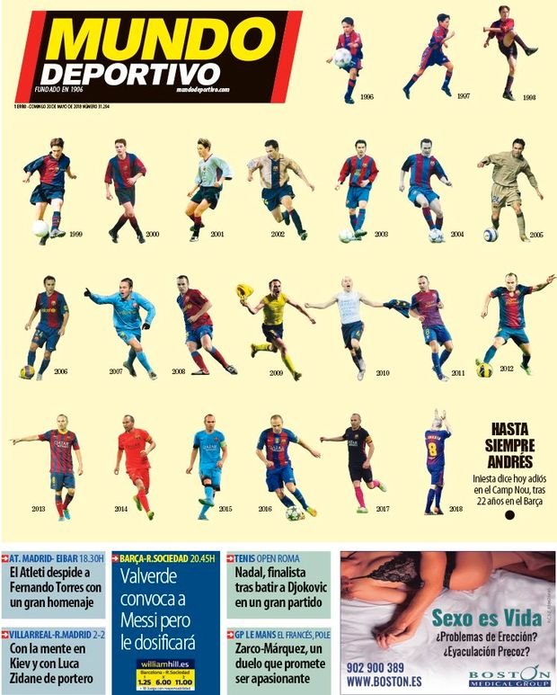 Το πρωτοσέλιδο αυτό είχε τίτλο «Για πάντα Αντρές» και φαίνεται ο Ινιέστα από την πρώτη φορά που φόρεσε τη φανέλα της Μπαρτσελόνα στα 12 του χρόνια μέχρι και σήμερα.