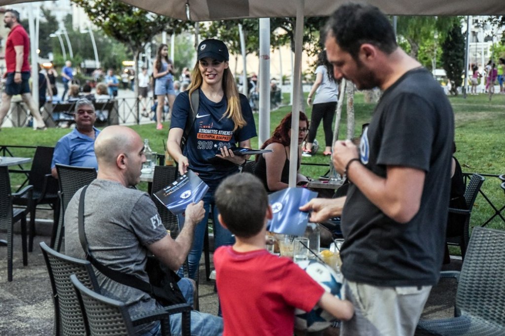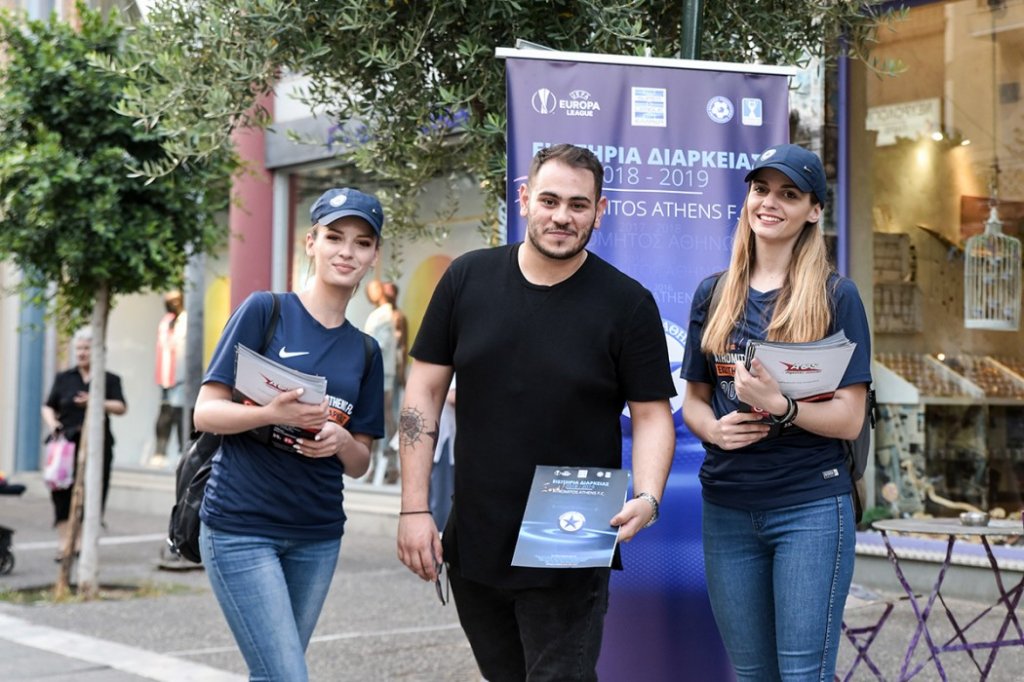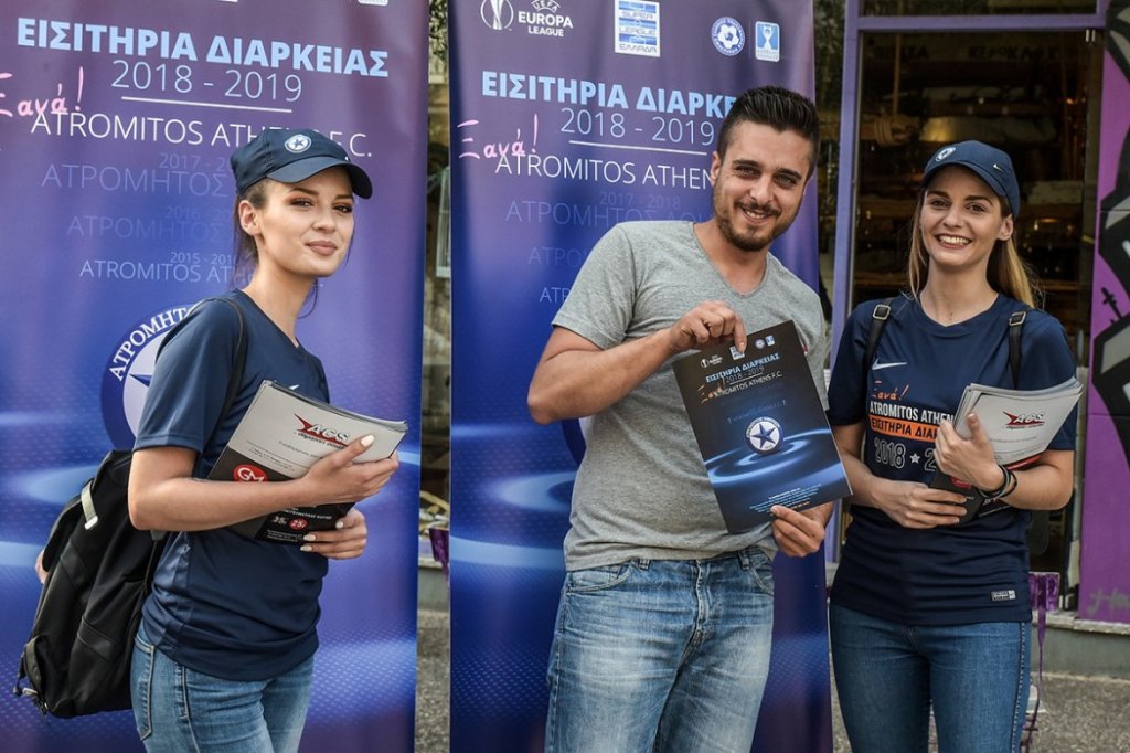 «Ενημερωτική εξόρμηση στον πεζόδρομο Περιστερίου πραγματοποιήθηκε την Παρασκευή με σκοπό την διανομή φυλλαδίων σχετικά με τα νέα εισιτήρια διαρκείας της ομάδας με σύνθημα «Ξανά Atromitos Athens FC».