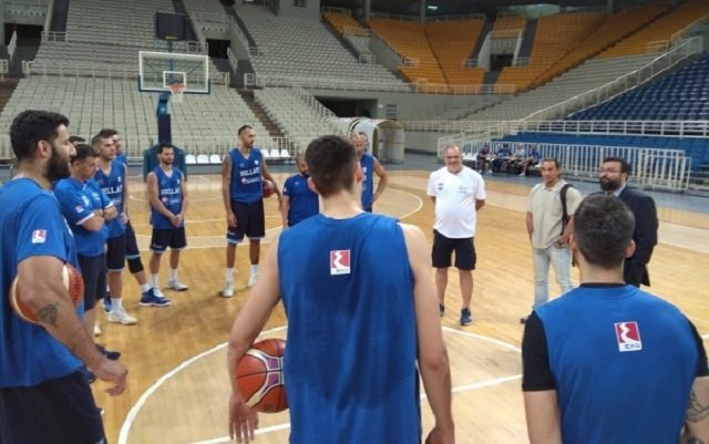 Ο υφυπουργός Αθλητισμού παρακολούθησε μέρος της προπόνησης και μίλησε στους παίκτες του Θανάση Σκουρτόπουλου που ετοιμάζονται για το τρίτο «παράθυρο» της ΦΙΜΠΑ κόντρα σε Ισραήλ (28/6) και Εσθονία (2/7).