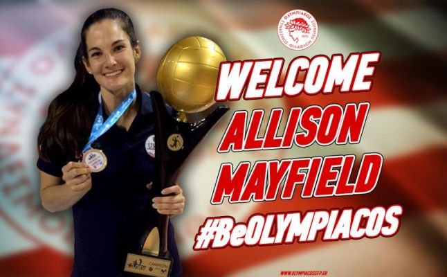 Aναλυτικά, η ανακοίνωση: «Ο Ολυμπιακός Σ.Φ.Π. ανακοινώνει την έναρξη της συνεργασίας του με την Αμερικανίδα ακραία Άλισον Μέιφιλντ η οποία υπέγραψε συμβόλαιο ενός έτους. Η Μέιφιλντ είναι 29 ετών (3/10/1989) και έχει ύψος 1,85μ.