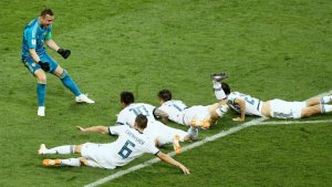 Μια τεράστια πρόκριση για την ομάδα Στάνισλαβ Τσερτσέσοφ, που ήρθε μετά από ένα συγκλονιστικό ματς ως προς την εξέλιξη-αγωνία στο κατάμεστο από 80.000 θεατές «Luzhniki» της Μόσχας. Και ήταν θρίλερ, από τα λίγα, αφού ο νικητής αναδείχθηκε μέσα από τη διαδικασία των πέναλτι, όπου οι Ρώσοι χάρη σε δύο αποκρούσεις του γκολκίπερ τους Ιγκόρ Ακινφέεφ επικράτησαν με 4-3 των Ιβήρων, μετά το ισόπαλο 1-1 σε 90λεπτο και ημίωρη παράταση.