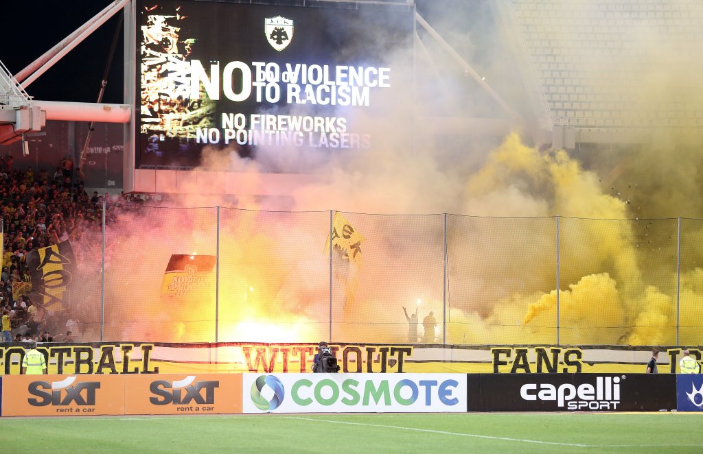 Δείτε στο βίντεο του a-sports.gr, τη θερμή υποδοχή των ΑΕΚτζήδων κατά την επίσημη είσοδο των δύο ομάδων στον αγωνιστικό χώρο.