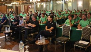 Το πρόγραμμα συνεχίστηκε με διάλεξη της διαιτολόγου κας Μπαμπαρούτση αναφορικά με θεματα Αθλητικής Διατροφής, ενώ στη συνέχεια ακολούθησε η ανάλυση της αγωνιστικής περιόδου 2017/18. Έως τη λήξη του προγράμματος, οι συμμετέχοντες θα έχουν την ευκαιρία να παρακολουθήσουν από την ΚΕΔ/ΕΠΟ αναλύσεις αναφορικά με το θέμα "Διαχείρηση του Αγώνα", και στη συνέχεια θα γίνει επεξήγηση των αλλαγών των "Κανόνων Παιχνιδιού" 2018/19.