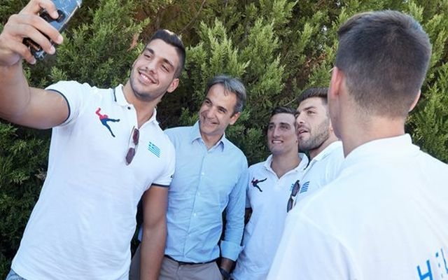 Ο πρόεδρος της Νέας Δημοκρατίας είχε συνάντηση με τα μέλη της αποστολής και στη συζήτηση που είχε με τους πολίστες δέχθηκε μεταξύ αστείου και σοβαρού την ερώτηση αν θα υιοθετήσει τις αξίες της σκληρής δουλειάς, της ευγενούς άμιλλας και της ομαδικότητας εφόσον εκλεγεί πρωθυπουργός.