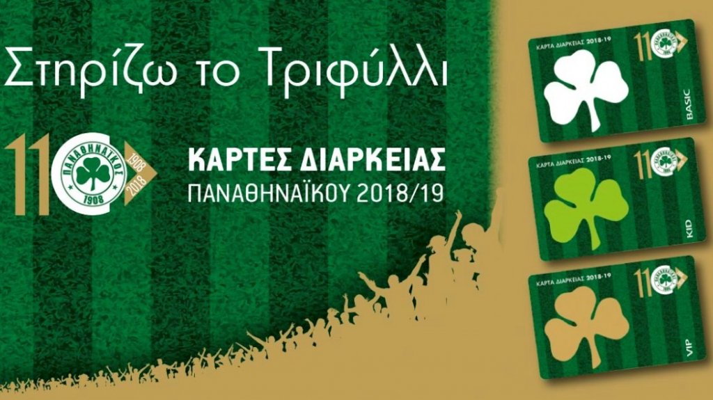 Με σύνθημα «Στηρίζω το Τριφύλλι» κυκλοφορούν από το πρωί της Τρίτης (28/8) τα εισιτήρια διαρκείας του Παναθηναϊκού για τη σεζόν 2018-2019.
