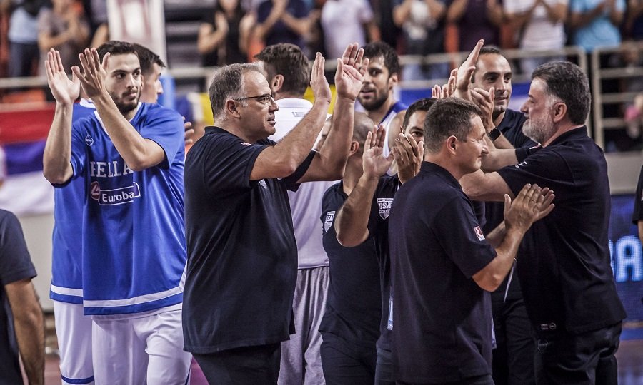 Το... σύνθημα για το 8/8 έδωσε ο Θανάσης Σκουρτόπουλος το Σάββατο (15/9), εν όψει του εκτός έδρας αγώνα της Εθνικής μπάσκετ με την Γεωργία (16/9).