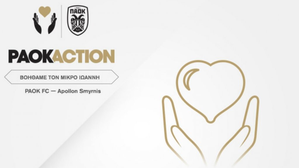 Στον αγώνα εναντίον του Απόλλωνα Σμύρνης (07.10, 18:15) μέρος των εσόδων θα διατεθεί στον 16χρονο Ιωάννη, ο οποίος πάσχει από ραβδομυοσάρκωμα και τύφλωση. Όλοι μαζί στεκόμαστε δίπλα στον Ιωάννη και την οικογένειά του!».