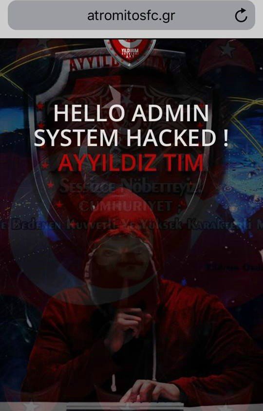 Στο στόχαστρο Τούρκου χάκερ μπήκε ο Ατρόμητος. Από το βράδυ της Τρίτης (9/10), η επίσημη ιστοσελίδα του συλλόγου δεν είναι προσβάσιμη και αυτό οφείλεται στον «Ayyildiz Tim», όπως υπογράφει.