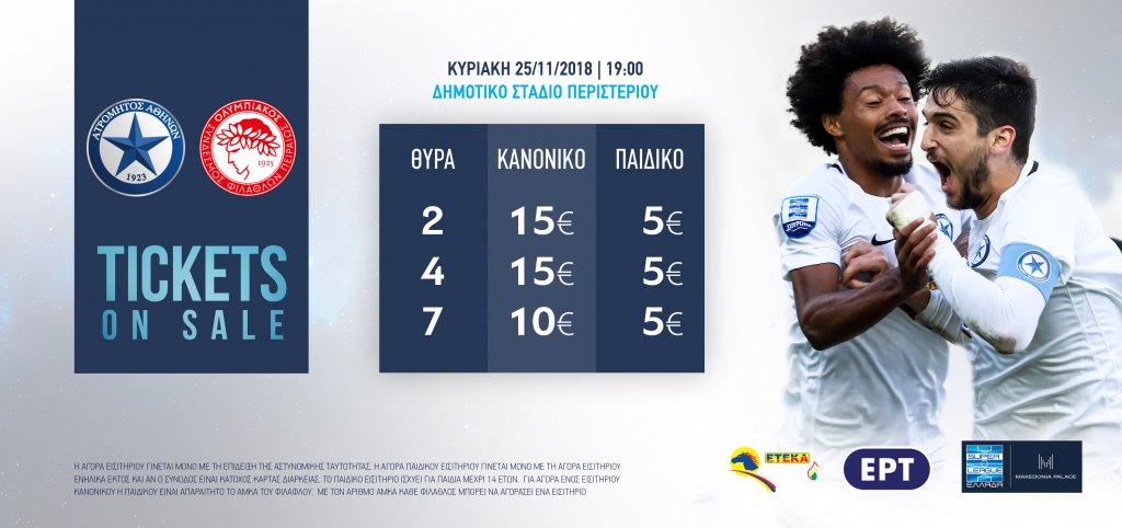 Αναλυτικά η ενημέρωση: «Το Τμήμα Διαχείρισης Εισιτηρίων της ΠΑΕ Ατρόμητος ανακοινώνει ότι σήμερα, Πέμπτη 22 Νοεμβρίου 2018 συνεχίζεται η προπώληση εισιτηρίων για την 11η αγωνιστική της Superleague ΣΟΥΡΩΤΗ που θα διεξαχθεί την Κυριακή 25 Νοεμβρίου στις 19.00 στο Δημοτικό Στάδιο Περιστερίου.