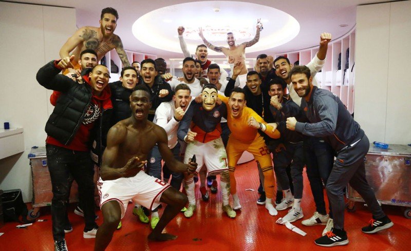 Ο ισχυρός άνδρας του Ολυμπιακού πανηγύρισε με τους παίκτες τον θρίαμβο επί της Μίλαν