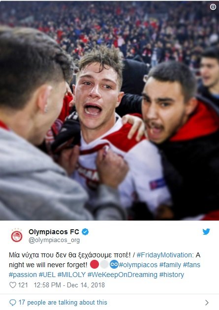 «Μία νύχτα που δεν θα ξεχάσουμε ποτέ!», έγραψαν οι «ερυθρόλευκοι».