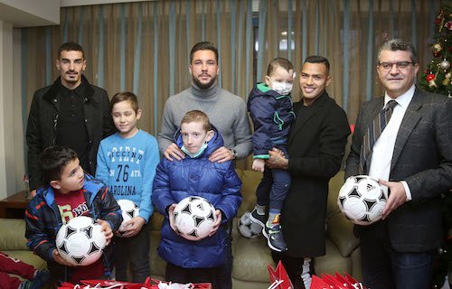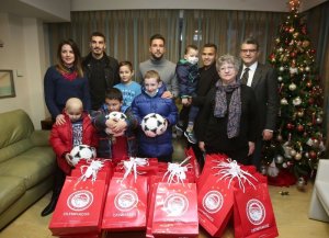 Συγκεκριμένα, οι Λάζαρος Χριστοδουλόπουλος, Ματίας Ναουέλ, Μιγκέλ Άνχελ Γκερέρο αλλά και ο Διευθυντής της Ε.Κ.Ε. της «ερυθρόλευκης» ΠΑΕ, Δομένικος Μασούλας, πέρασαν αρκετή ώρα δίπλα στους μικρούς ήρωες μοιράζοντάς τους δώρα.