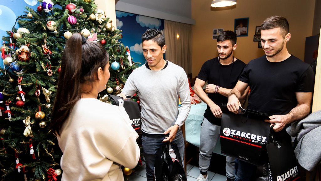 Αντιπροσωπεία της ομάδας αποτελούμενη από μέλη της διοίκησης και ποδοσφαιριστές επισκέφτηκε το σπίτι όπου μοίρασε πολλά δώρα και έπαιξε μετα παιδιά.