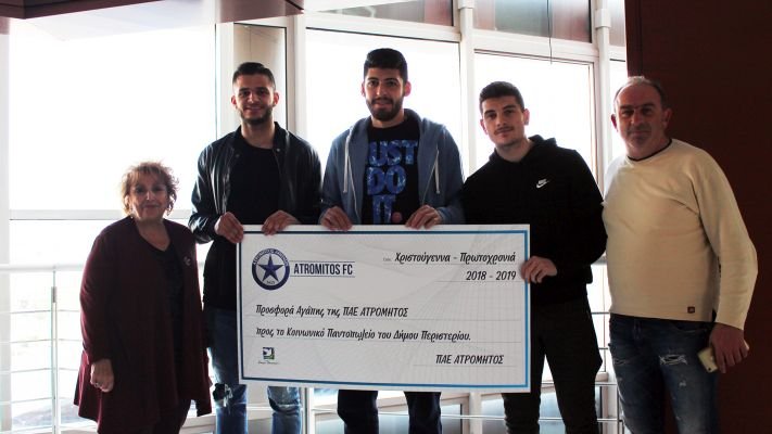 Οι Περιστεριώτες παρέδωσαν στην αρμόδια δημοτική σύμβουλο Ξένη Κορόγιαννη μια ενδεικτική επιταγή της προσφοράς της ΠΑΕ, με το «παρών» να δίνουν ο πρόεδρος της ομάδας και αντιδήμαρχος Περιστερίου Βασίλης Μπέτσης, ενώ τους παίκτες εκπροσώπησαν οι Κωτσόπουλος, Στρούγγης και Θεοδωράκης.