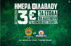 Αναλυτικά η ανακοίνωση: «Η ΚΑΕ Παναθηναϊκός ΟΠΑΠ, θέλοντας να ευχαριστήσει τους φιλάθλους της ομάδας για τη συγκλονιστική τους στήριξή και την τρέχουσα αγωνιστική περίοδο, διοργανώνει για πέμπτη συνεχόμενη χρονιά την “Ημέρα Φιλάθλου”! Για αυτή τη σεζόν o θεσμός που ονομάζεται “Ημέρα Φιλάθλου” ορίζεται για τον πρώτο εντός έδρας αγώνα του Παναθηναϊκού ΟΠΑΠ το 2019, αυτόν με τον Χολαργό (6/1, 17.00) με ΓΕΝΙΚΗ ΕΙΣΟΔΟ 3€ και θα είναι ιδιαίτερη για έναν σημαντικό λόγο: τα έσοδα θα διατεθούν, μέσω του υπό σύσταση ιδρύματος “ΠΑΥΛΟΣ ΓΙΑΝΝΑΚΟΠΟΥΛΟΣ”, για κοινωφελείς σκοπούς.