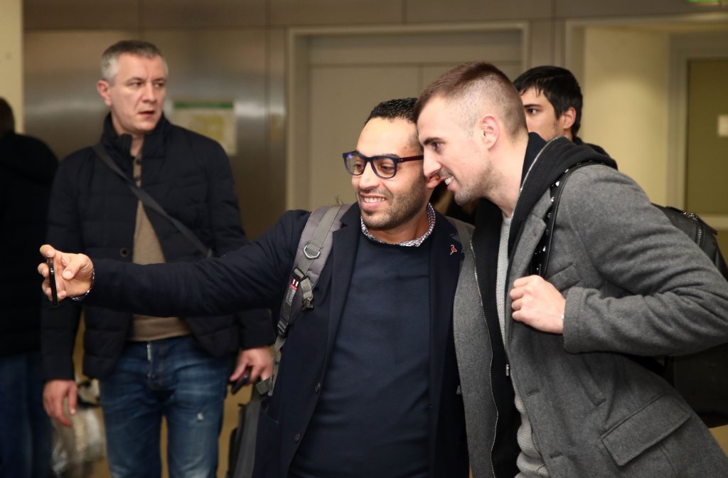 Άνθρωποι της ΠΑΕ τους υποδέχθηκαν στο αεροδρόμιο και στη συνέχεια αναχώρησαν για το ξενοδοχείο.