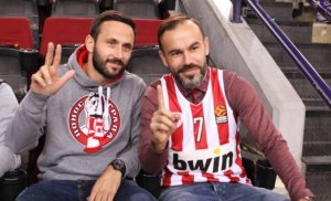 Μάλιστα, ο μέσος του Ολυμπιακού φορούσε και τη φανέλα του αρχηγού της ομάδας μπάσκετ, Βασίλη Σπανούλη.
