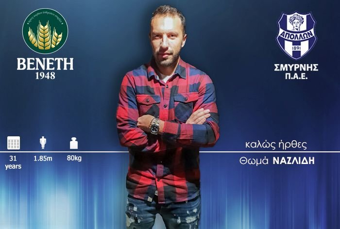Αναλυτικά: «Η ΠΑΕ Απόλλων Σμύρνης ανακοινώνει την απόκτηση του ποδοσφαιριστή Θωμά Ναζλίδη. Γεννημένος στις 23 Οκτωβρίου 1987, αγωνίζεται ως επιθετικός. Στο παρελθόν έχει παίξει σε Άρη, Λάρισα, Βέροια, Πλατανιά, Καβάλα, Μακεδονικό και Εθνικό Σόχου».