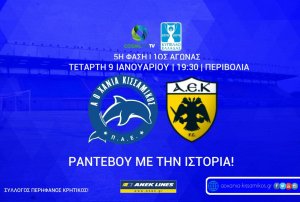 Οι Κρητικοί αντιμετωπίζουν την ΑΕΚ στη φάση των «16» του Κυπέλλου Ελλάδας, με το πρώτο ματς να διεξάγεται την Τετάρτη (9/1).