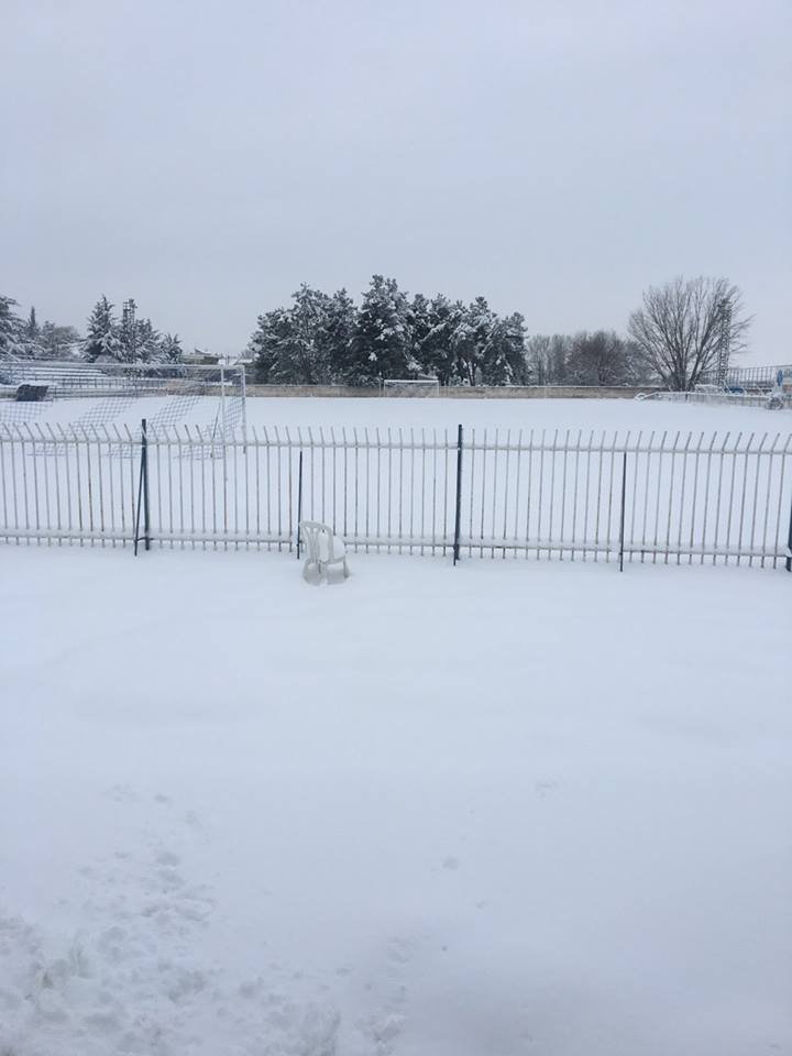 Ανάλογη... τύχη αναμένεται να έχει και το Αιγινιακός – Βόλος, αφού το χιόνι στο Αιγίνιο είναι επίσης πολύ.