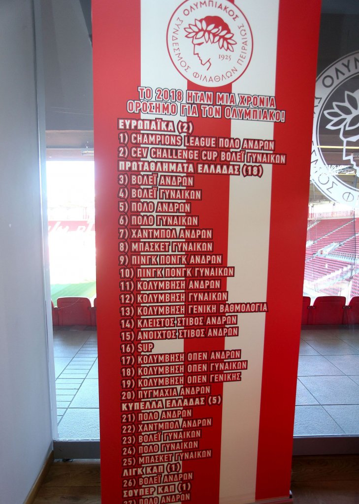 Αποκορύφωμα των περσινών επιτυχιών ήταν η συμμετοχή 4 τμημάτων μας σε ευρωπαϊκούς τελικούς και η κατάκτηση των 2 εξ αυτών. Το Τσάμπιονς Λιγκ του Πόλο Ανδρών και το Τσάλεντζ Καπ του Βόλεϊ Γυναικών. Και οι δυο κατακτήσεις να σημειώσουμε ότι έγιναν στην έδρα του αντιπάλου, στην Τουρκία και στην Ιταλία. Ήταν επιτυχίες που μας γέμισαν με χαρά και υπερηφάνεια, όλους τους οπαδούς του Ολυμπιακού, αλλά και όλους τους υγιείς φίλαθλους τους Ελλάδας. Είμαστε σίγουροι ότι οι αθλητές μας και φέτος θα προσπαθήσουν και θα πετύχουν τις ίδιες και ακόμα περισσότερες κατακτήσεις και για την ιστορία τη δικιά τους και για την ιστορία του συλλόγου μας. Ο Ολυμπιακός μας πλέον είναι ο μεγαλύτερος αθλητικός σύλλογος, όχι μόνο στην Ελλάδα αλλά και σε όλη την Ευρώπη και αυτό όχι γιατί το λέμε εμείς, αλλά γιατί το αποδεικνύουν οι δεκάδες τίτλοι που κατακτούμε κάθε χρόνο στην Ελλάδα αλλά και οι συνεχόμενες επιτυχίες στο ευρωπαϊκό στερέωμα. Χαρακτηριστικό παράδειγμα είναι ότι τα τελευταία 7 χρόνια, όπου συμμετέχουμε ανελλιπώς με όλα τα τμήματά μας στις ευρωπαϊκές διοργανώσεις, έχουμε φτάσει σε 13 ευρωπαϊκούς τελικούς, έχοντας κατακτήσει 6 τίτλους. Η ιστορία κάθε συλλόγου γράφεται από τους τίτλους.