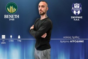 Αναλυτικά η ανακοίνωση: «Η ΠΑΕ Απόλλων Σμύρνης ανακοινώνει την απόκτηση του ποδοσφαιριστή, Χρήστου Αγρόδημου. Γεννημένος στις 16 Μαρτίου 1995 στο Χέρφορντ της Γερμανίας, αγωνίζεται ως μέσος. Στο παρελθόν έχει παίξει σε Παναιτωλικό, Απόλλων Λάρισας, Οικονόμο Τσαριτσάνης, Τύρναβο και ΑΕΛ».