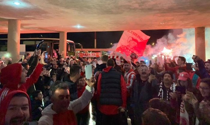 Θερμή υποδοχή στο αεροδρόμιο για τους «ερυθρόλευκους» εν όψει του ματς με τον Ήφαιστο