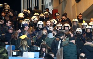 Αυτό προκάλεσε την αντίδραση των φίλων της Ένωσης οι οποίοι προσπάθησαν να κατευθυνθούν προς το μέρος τους ωστόσο με την παρέμβαση των ΜΑΤ αυτό αποφεύχθηκε.
