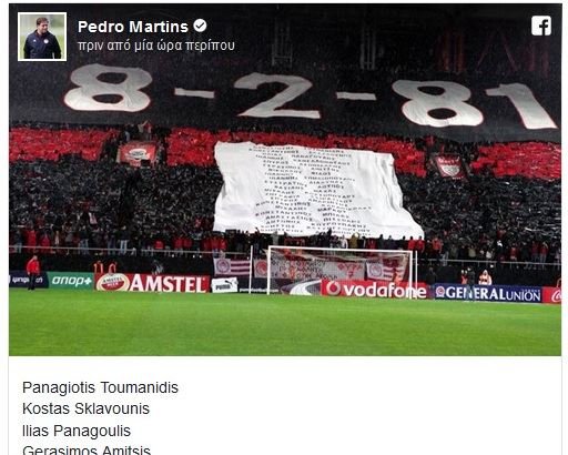 Το διαδικτυακό μήνυμα του τεχνικού του Ολυμπιακού για τα θύματα της Θύρας 7