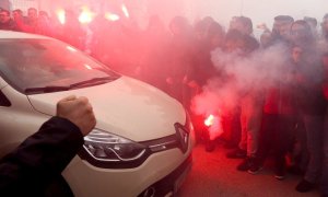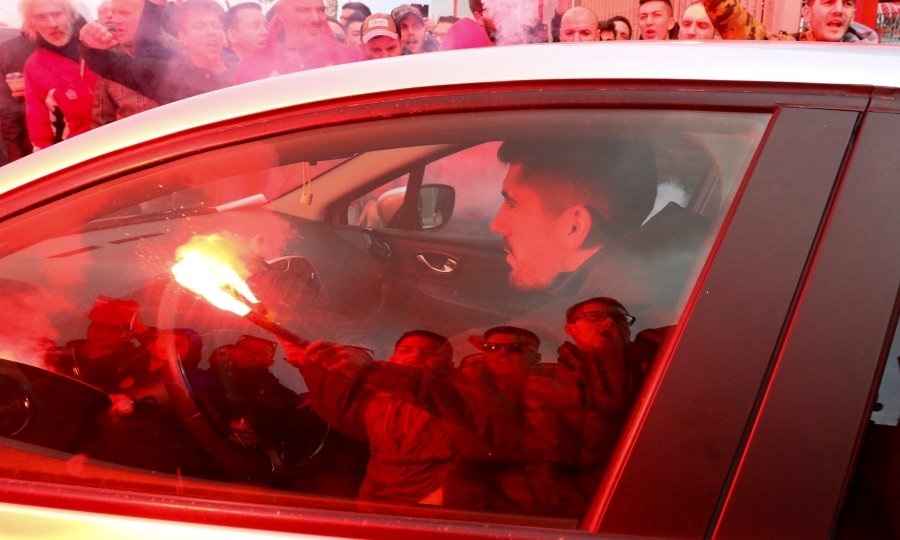 Δεν έλειψαν τα καπνογόνα και φυσικά τα συνθήματα με τα οποία τους ζητούσαν να επιστρέψουν από τη Θεσσαλονίκη με το τρίποντο στις αποσκευές τους.
