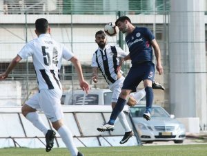 Στο πρώτο ημίχρονο οι γηπεδούχοι μπήκαν πιο αποφασισμένοι και μετά από μια ασφυκτική πίεση δέκα λεπτών κατάφεραν με τον Καψάλη στο 18ο λεπτό να ανοίξουν το σκορ της αναμέτρησης. Οι φιλοξενούμενοι προσπάθησαν να βρουν ρυθμό μετά το 1-0, η απευθείας κόκκινη όμως στον Τσιμίκα στο 30ο λεπτό τους έκοψε την φόρα και τους περιόρισε στην άμυνα τους.