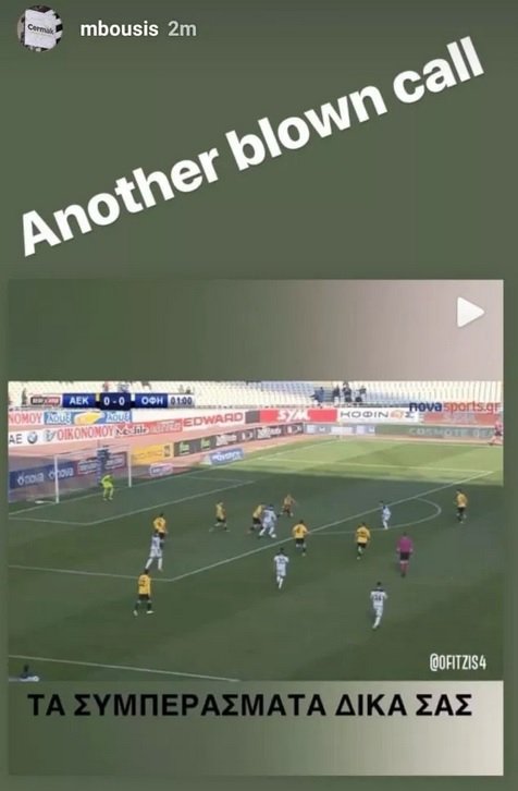 Αργά το βράδυ της Κυριακής (10/2) έκανε σχετική ανάρτηση στα μέσα κοινωνικής δικτύωσης με την επίμαχη φάση και το σχόλιο «Άλλο ένα σφύριγμα. Τα συμπεράσματα δικά σας», εκφράζοντας έτσι τη δυσαρέσκειά του και δεν αποκλείεται να υπάρξει και συνέχεια.