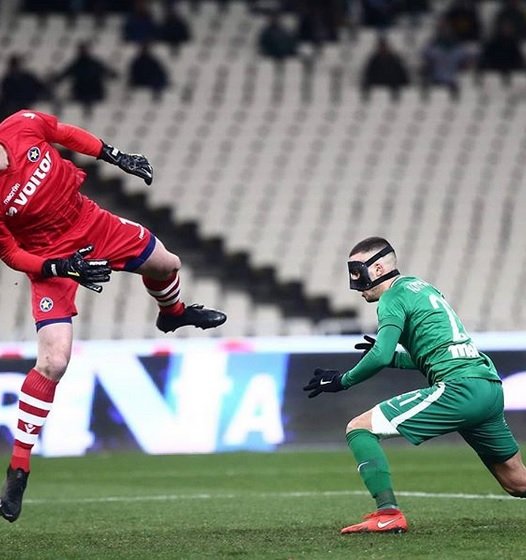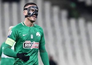 Παρά τον τραυματισμό του στο πρόσωπο, ο Δημήτρης Κουρμπέλης αγωνίστηκε κανονικά κόντρα στον Αστέρα Τρίπολης.