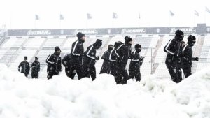 Μέσα στα χιόνια η τελευταία προπόνηση των «ασπρόμαυρων» εν όψει Άρη * Η αποστολή