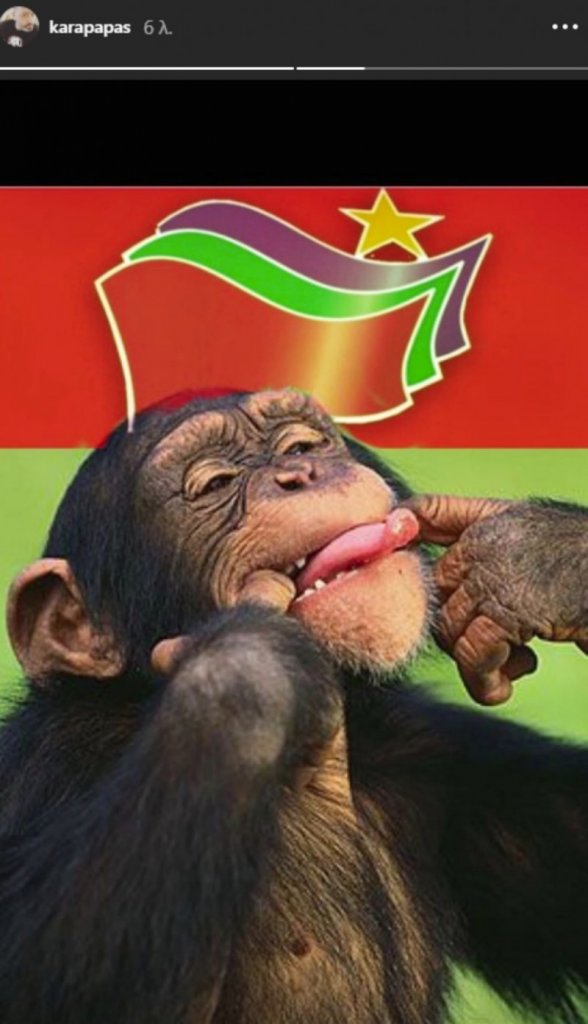 Συγκεκριμένα, στον λογαριασμό του στο Instagram ανέβασε τη φωτογραφία μίας μαϊμούς και το σήμα του ΣΥΡΙΖΑ.