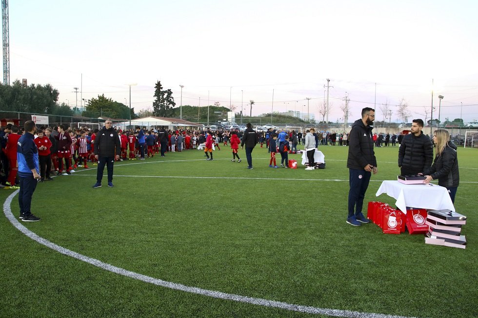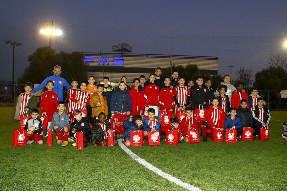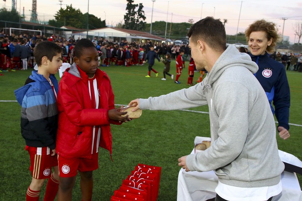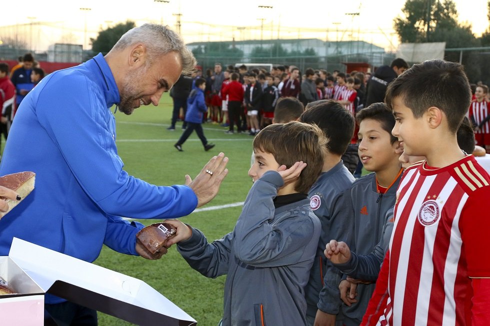 Οι τρεις ποδοσφαιριστές του Ολυμπιακού πήγαν στην κοπή της πρωτοχρονιάτικης πίτας των Κεντρικών Σχολών *Εκεί ήταν και ο διευθυντής της Ακαδημίας, Ρικάρντο Πέρες