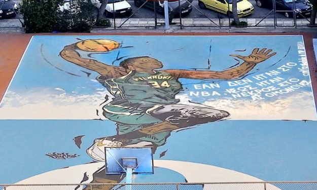 Συγκεκριμένα, έγραψαν δίπλα στο γκράφιτι του Γιάννη Αντετοκούνμπο που υπάρχει πια σε γήπεδο στα Σεπόλια ένα μήνυμα που συγκλονίζει.