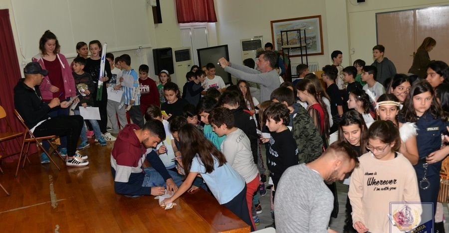 Μπαράλες, Τομάς και Κατσίκας έδωσαν το «παρών», για να αποθεωθούν από τους μικρούς μαθητές, στους οποίους και υπέγραψαν πολλά αυτόγραφα.