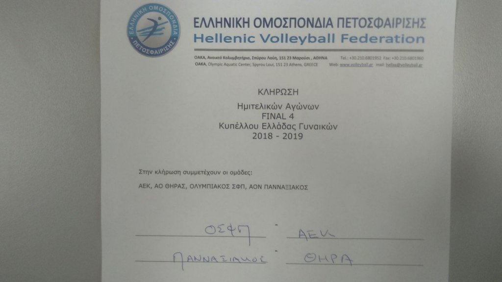 Συγκεκριμένα, Ολυμπιακός και ΑΕΚ θα τα πουν πριν τον τελικό στο Φάιναλ-4, ενώ το άλλο ζευγάρι είναι το Πανναξιακός – Α.Ο. Θήρας.